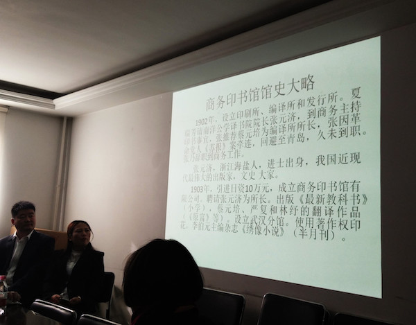 公司領導從商務印書館創立背景講起,大家認真聆聽。
