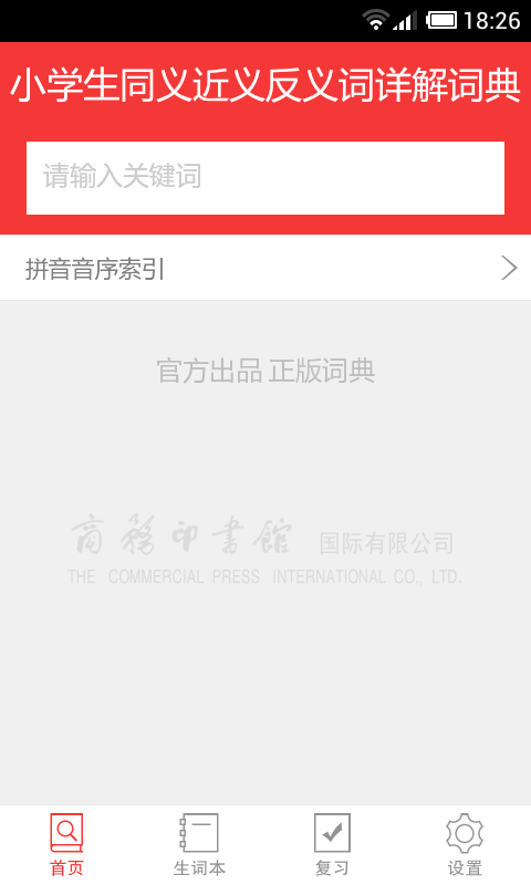 【軟件簡(jiǎn)介】專門為小學(xué)生編寫的同義詞近義詞反義詞詳解詞典。《小學(xué)生同義詞近義詞反義詞詳解詞典(四色插圖本)》2011年8月第1版第1次印刷手機(jī)版同步發(fā)行。內(nèi)容緊密結(jié)合小學(xué)語(yǔ)文教材,配合小學(xué)教學(xué)。同義詞近義詞、反義詞按義項(xiàng)選取并釋義、舉例,明細(xì)精確。總詞目近38000條,主詞目9500多條,全面實(shí)用。同義詞近義詞近25000條,反義詞13000多條,豐富恰當(dāng)。注意400多條、辨析450組,準(zhǔn)確到位,簡(jiǎn)約明晰。插圖200多幅,直觀對(duì)比,幫助理解詞義。海詞詞典(中國(guó)第一個(gè)互聯(lián)網(wǎng)詞典Dict.cn)攜手商務(wù)印書館國(guó)際有限公司官方權(quán)威正版發(fā)布,具有攝像頭查詞、通知欄快捷查詞等便捷查詞功能,還有清晰發(fā)音、生詞收藏和復(fù)習(xí)背誦等輔助學(xué)習(xí)功能。選擇正版詞典,學(xué)習(xí)更有保障!(版權(quán)所有,盜版必究)